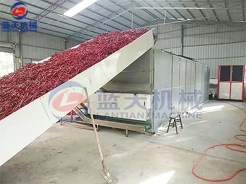 湖南網(wǎng)帶辣椒烘干機(jī)烘干現(xiàn)場:可烘干量大
